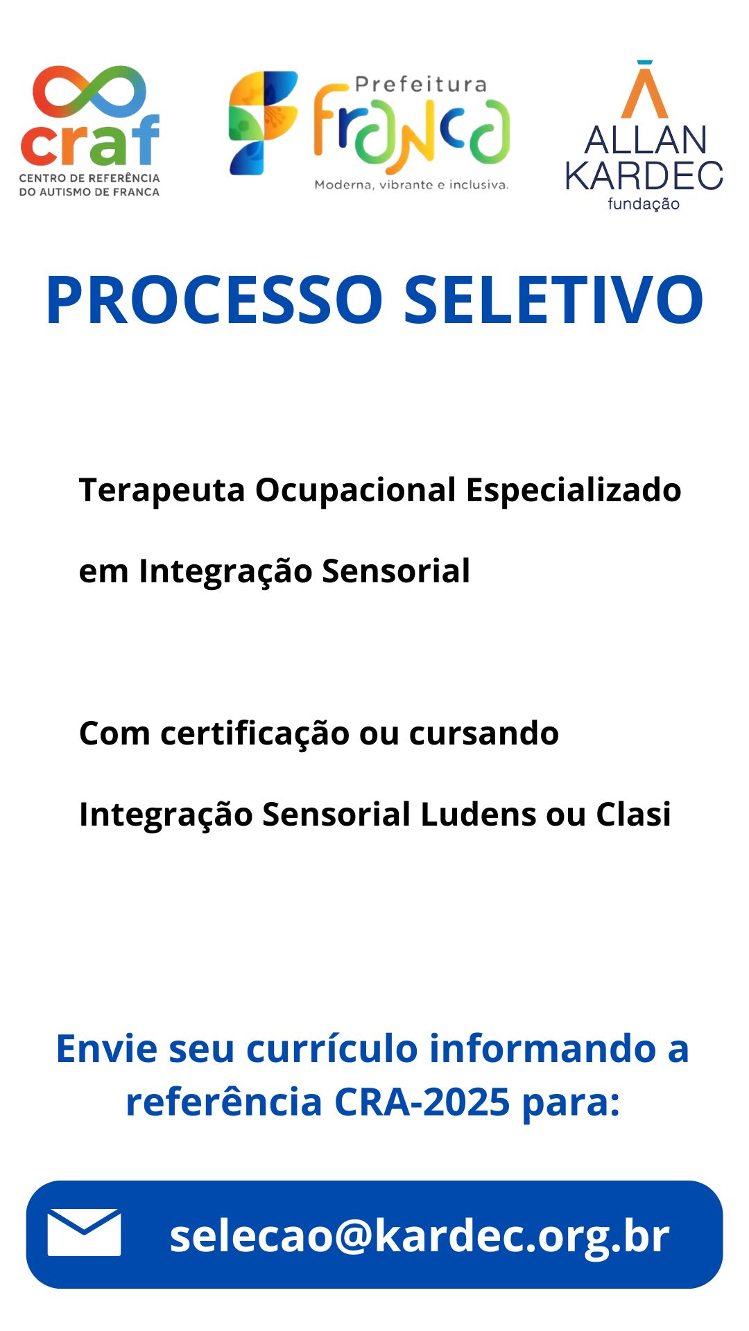 PROCESSO SELETIVO PARA CONTRATAÇÃO DOS PROFISSIONAIS DO CENTRO DE REFERÊNCIA DO AUTISMO DE FRANCA 09/09/2025